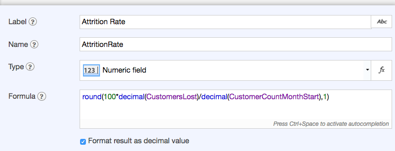 2. Create another numeric field called "Customer Attrition Rate" where we will do the calculation